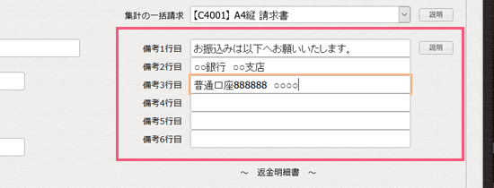 お支払方法や期日など、お知らせしたいことを請求書に添えることができます。