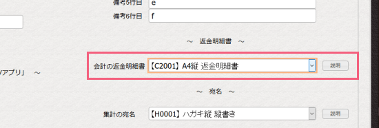 【説明】ボタンにて、印字例を画像でご覧いただけます。