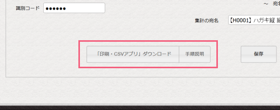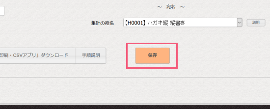 画面上部の右のボタンをクリックして、「宛名・帳票印刷」を選択してください。