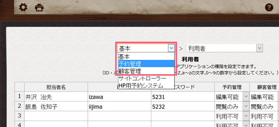 画面上部の左のボタンをクリックして、「予約管理」を選択してください。