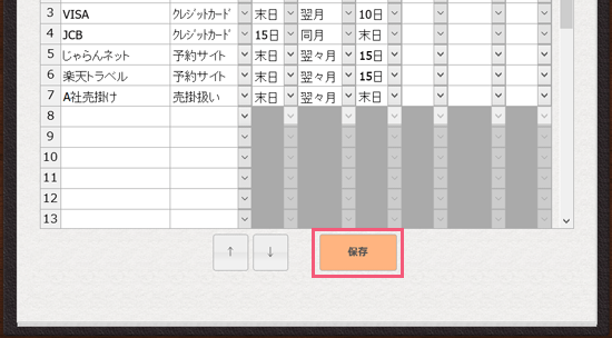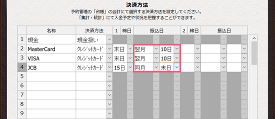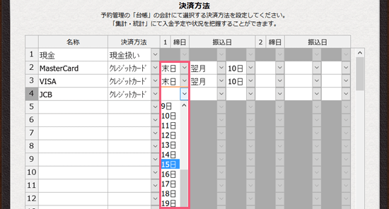 「クレジットカード、予約サイト、売掛扱い」であれば、「振込日」も選択してください。