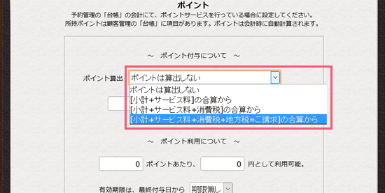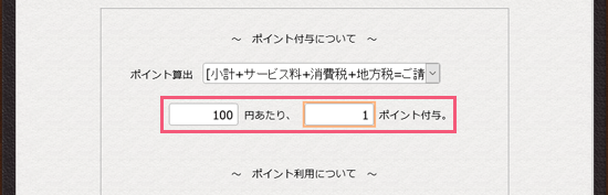 例えば、「100円あたり、1ポイント」とすると、1999円ご利用時に19ポイントをお客様に差し上げます。