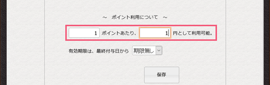 ポイントを円に換算する際に、何ポイントを何円にするか、値を入力してください。