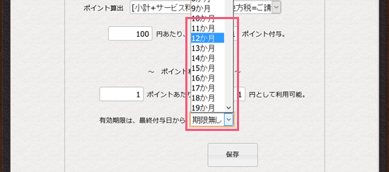 最後にポイントを取得した日から数えて、有効期限を決めることができます。