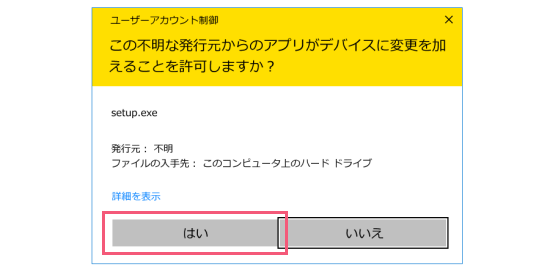 画像のような警告が表示されますので、こちらもクリックしてください。