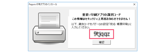 識別コードが表示されます。パグーロとつなげるために必要です。
