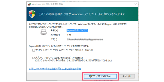 画像のようなものが表示されたら「アクセスを許可する」をクリックしてください。