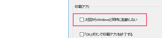 通常はチェックを入れないでください。チェックを入れると次回のパソコン起動以降、本アプリは自動で起動せず、印刷機能は使えなくなりますので、ご注意ください。