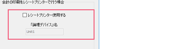 「論理デバイス」名とは、レシートプリンターに設定されている「論理デバイス」と同じ名称を入力する必要があります。