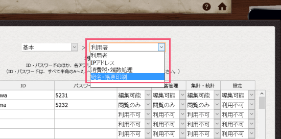画面上部の右のボタンをクリックして、「宛名・帳票印刷」を選択してください。