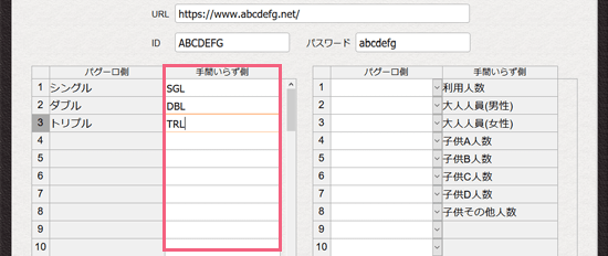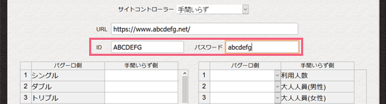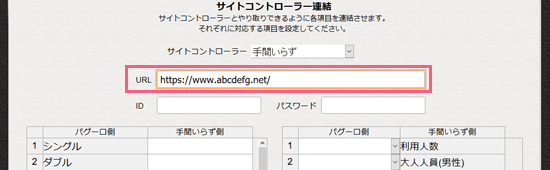 パグーロの部屋タイプ別に、サイトコントローラーで設定をした部屋タイプコードを入力してください。