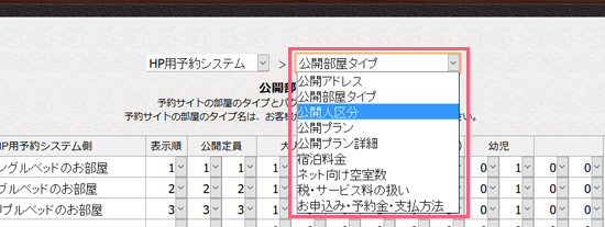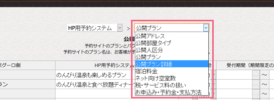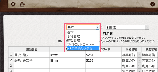 画面上部の左のボタンをクリックして、「HP用予約システム」を選択してください。