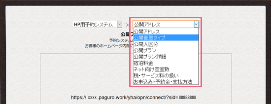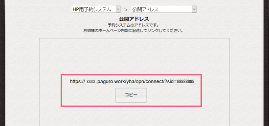 「コピー」ボタンをクリックし、お宿様のホームページのHTMLファイルをエディタで開き、「予約ボタン」あたる個所へこのアドレスを貼り付けてください。