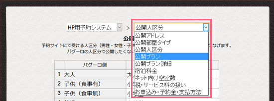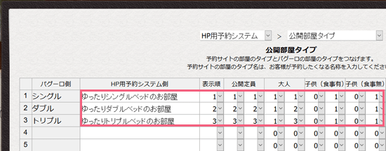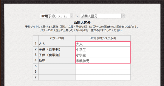 人区分の名をお客様に伝わりやすい表現に変えて入力してください。(食事、寝具の有無に関することは後ほど入力する個所があるので、ここでは不要です。)