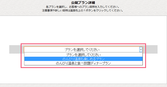 プラン名を広告的な表現に変えて入力してください。(お客様が泊まりたいと思える名前が良いと思います。)