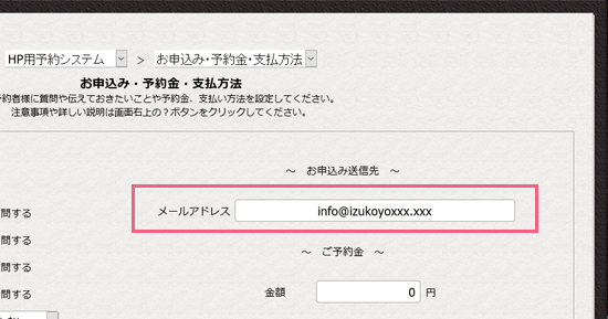 ご予約時に一部をご予約金としてお預かりする場合は、金額を設定してください。
