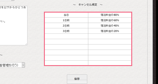 お客様にお知らせしておく、キャンセル規定を入力してください。