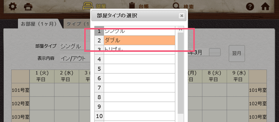 部屋タイプのボタンをクリックしてください。
