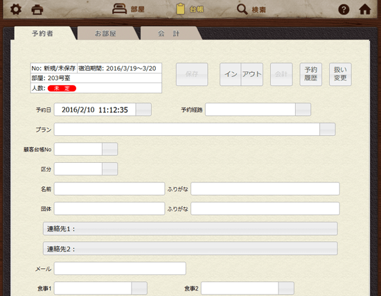 予約台帳が開きますので、ご予約される方のお名前などを入力してください。