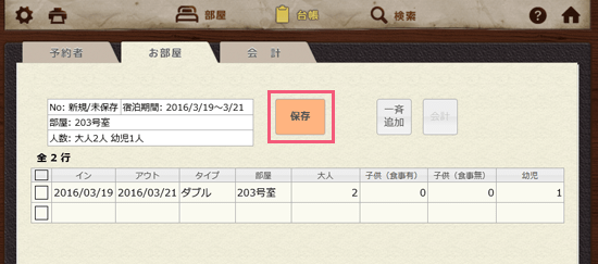 ひととおり入力を済ませたら「保存」ボタンをクリックしてください。予約が完了しました。