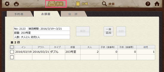 念のため確認してみます。「部屋」をクリックしてください。