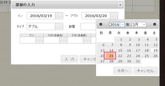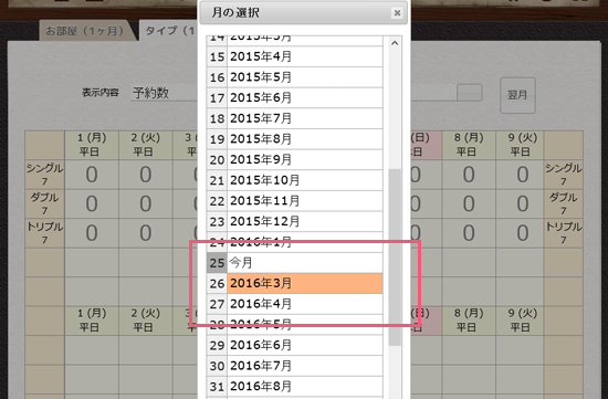 宿泊する月を選択してください。「2016年3月」をクリックします。