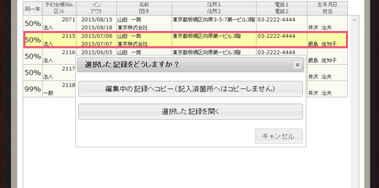 コピーは、新規の予約の際、過去の予約から転記することで、入力する手間を省くことができます。
