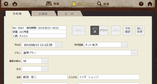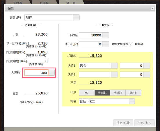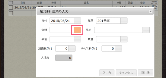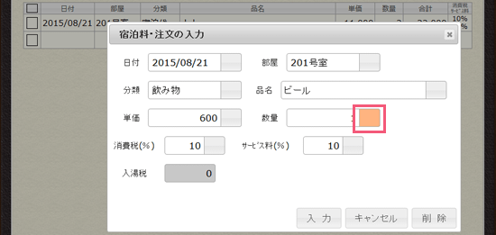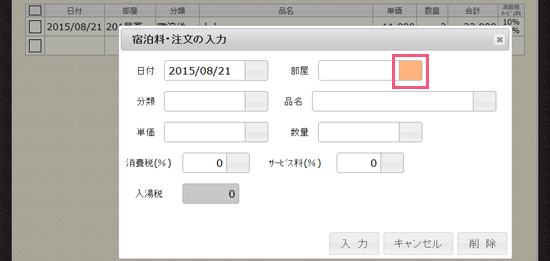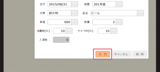 【最初に必ず行う設定2】の「宿泊料金の設定」の設定にしたがって、自動で入力されます。