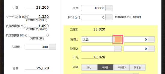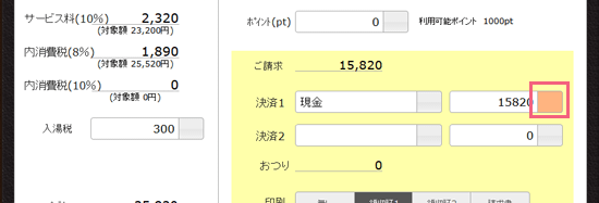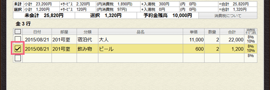 なお、行の先頭をクリックしてチェックを入れると個別に会計をすることもできます。