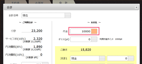 予約金を確認し、違っている場合は変更してください。ボタンをクリックすると、適切な金額が自動で充てられます。