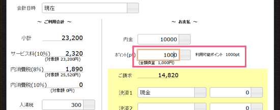ポイントサービスを行っていて、お客様が支払に充てることをご希望されている場合に、入力してください。※
