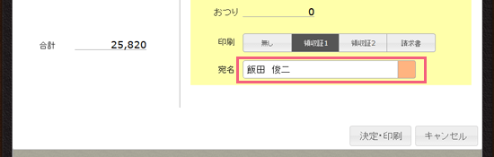 帳票に宛名を印字する場合は、ボタンをクリックして選択するか入力してください。
