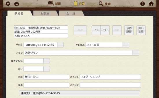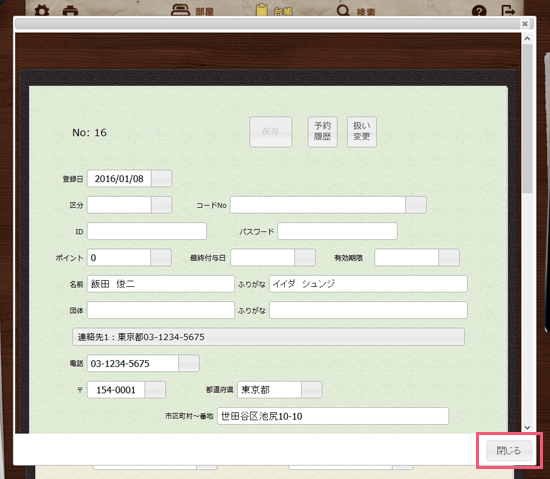 転記された顧客台帳が開き、内容を確認することができます。