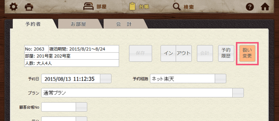 画面の上部にある「扱い変更」ボタンをクリックします。