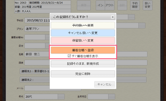 「顧客台帳へ登録」ボタンをクリックしてください。