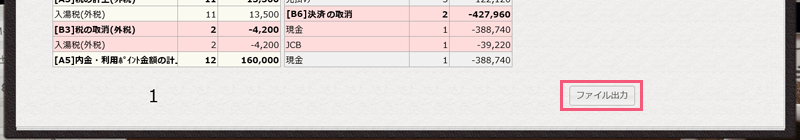 「ファイル出力」ボタンは、エクセル等で編集できるCSVファイルとして出力します。
