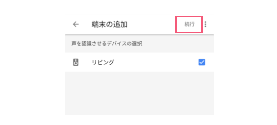 「端末の追加」画面が表示されたら、「続行」をタップしてください。