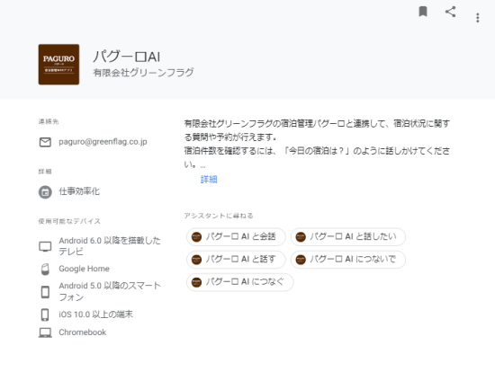 サイト「Googleアシスタント」のアプリ一覧から、「パグーロAI」を開いてください。