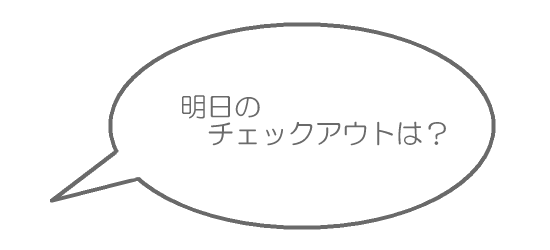 「今日のチェックアウトは?」と質問すると、「チェックアウトは2件です。」のように返答されます。