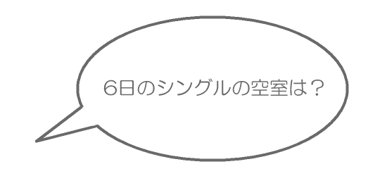「6日のシングルの空室は?」のように質問すると、「シングルの空室は3部屋です。」のように返答されます。