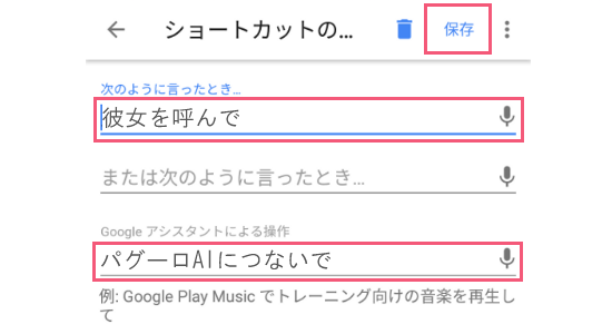 「パグーロAIにつないで」という呼びかけをお好みに変更することができます。