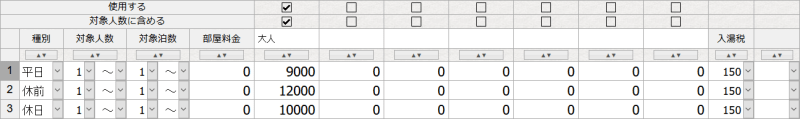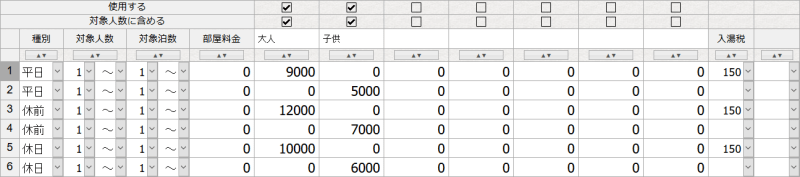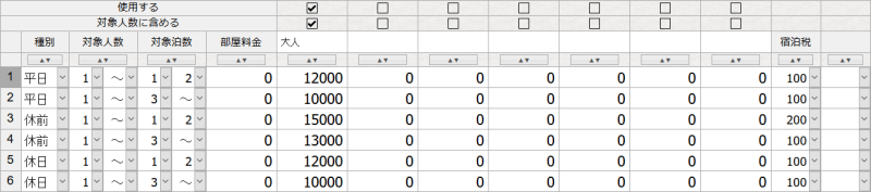 【プラン】・【部屋タイプ】別に、宿泊料金の詳細を設定します。