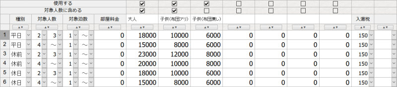 設定|宿泊料金(予約管理・HP用予約システム共通)